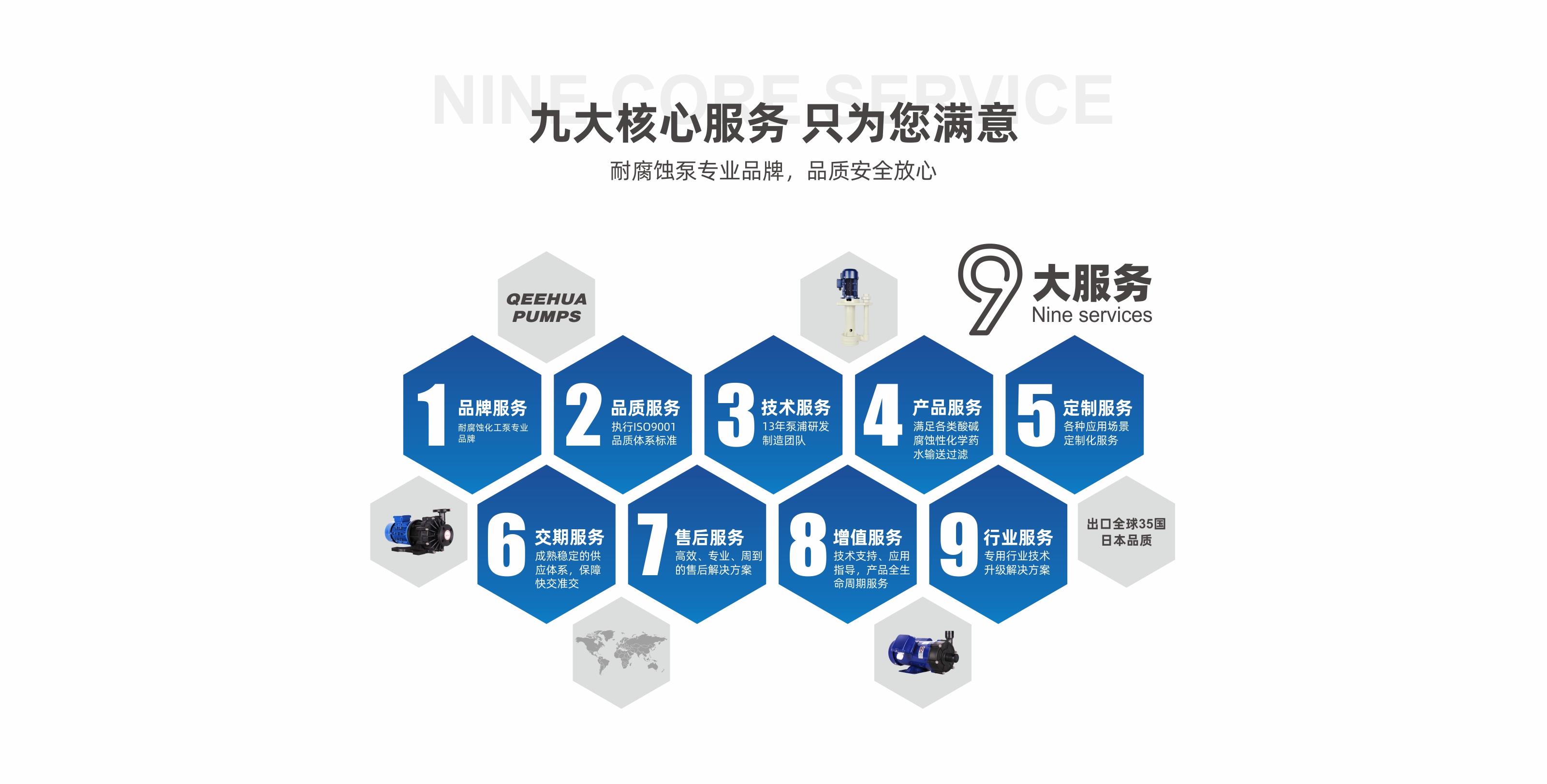 創新結構:企華在小型耐酸堿磁力泵、立式液下泵和電鍍過濾機品類均已形成標準化,產品質量穩定可靠,在一體成型、密封結構、防空轉、無泄漏和泵浦壽命等方面具有多項創新專利。